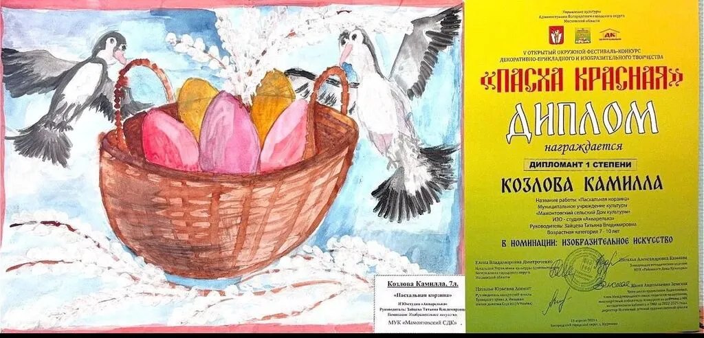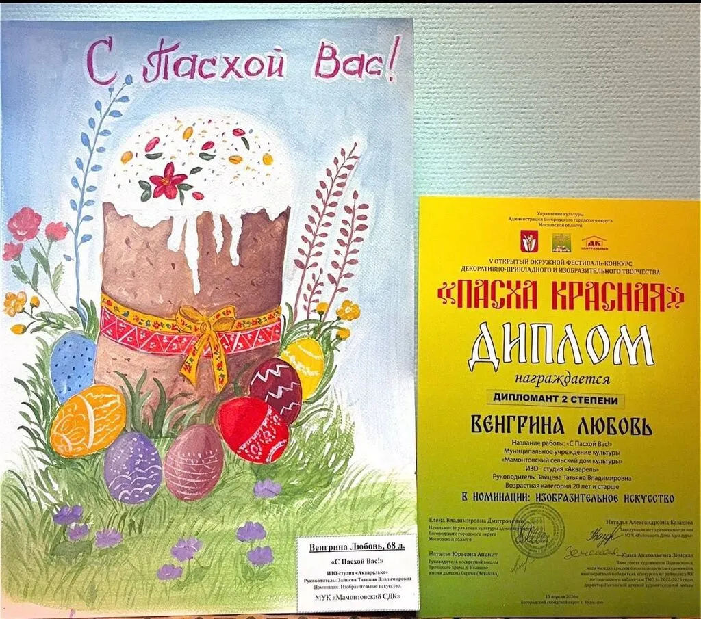 Участники творческих объединений МУК «Мамонтовский СДК» достойно представили свои работы на V открытом окружном фестивале-конкурсе декоративно-прикладного и изобразительного творчества «Пасха Красная» и были отмечены заслуженными наградами!